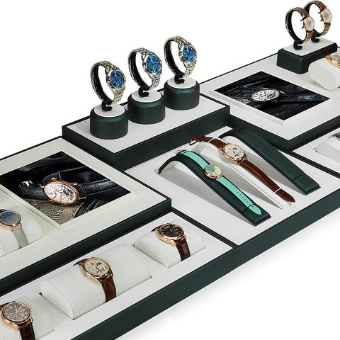 2023 High Quality Leather Watch Tray Organizer Storage Custom Blue Velvet Stackable Watch Tray
